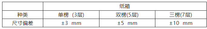 按照使(shǐ)用不同(tóng)瓦楞紙(zhi)闆的種(zhǒng)類,紙箱(xiang)尺寸允(yǔn)許偏差(cha)的最大(da)值見下(xia)表.